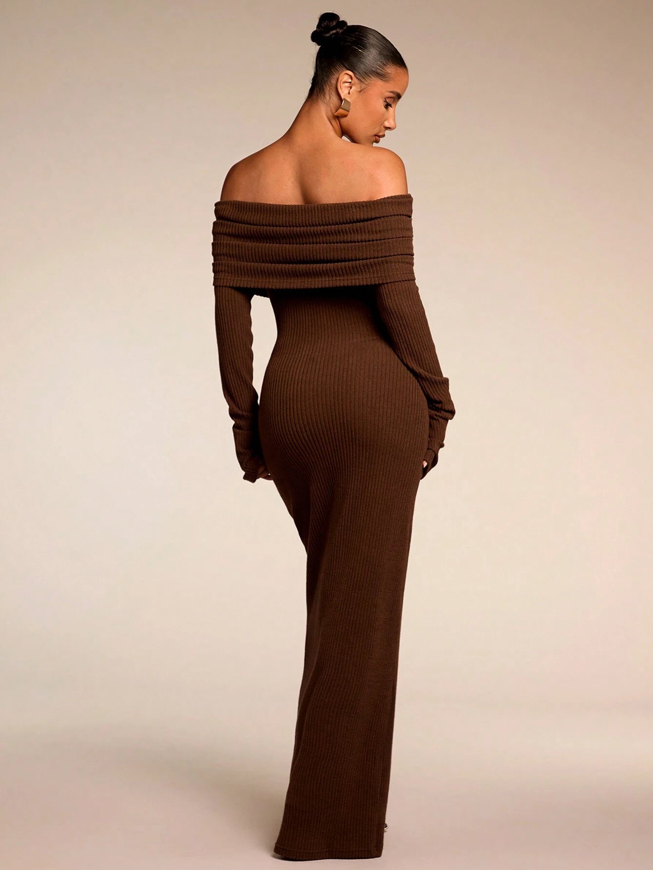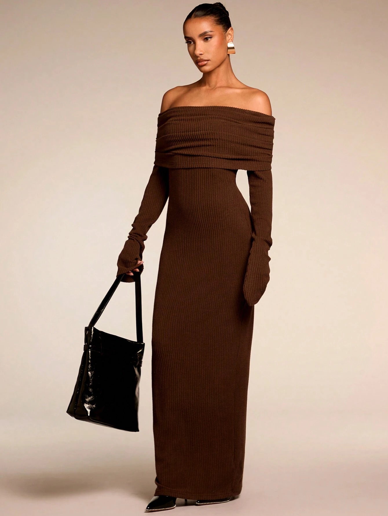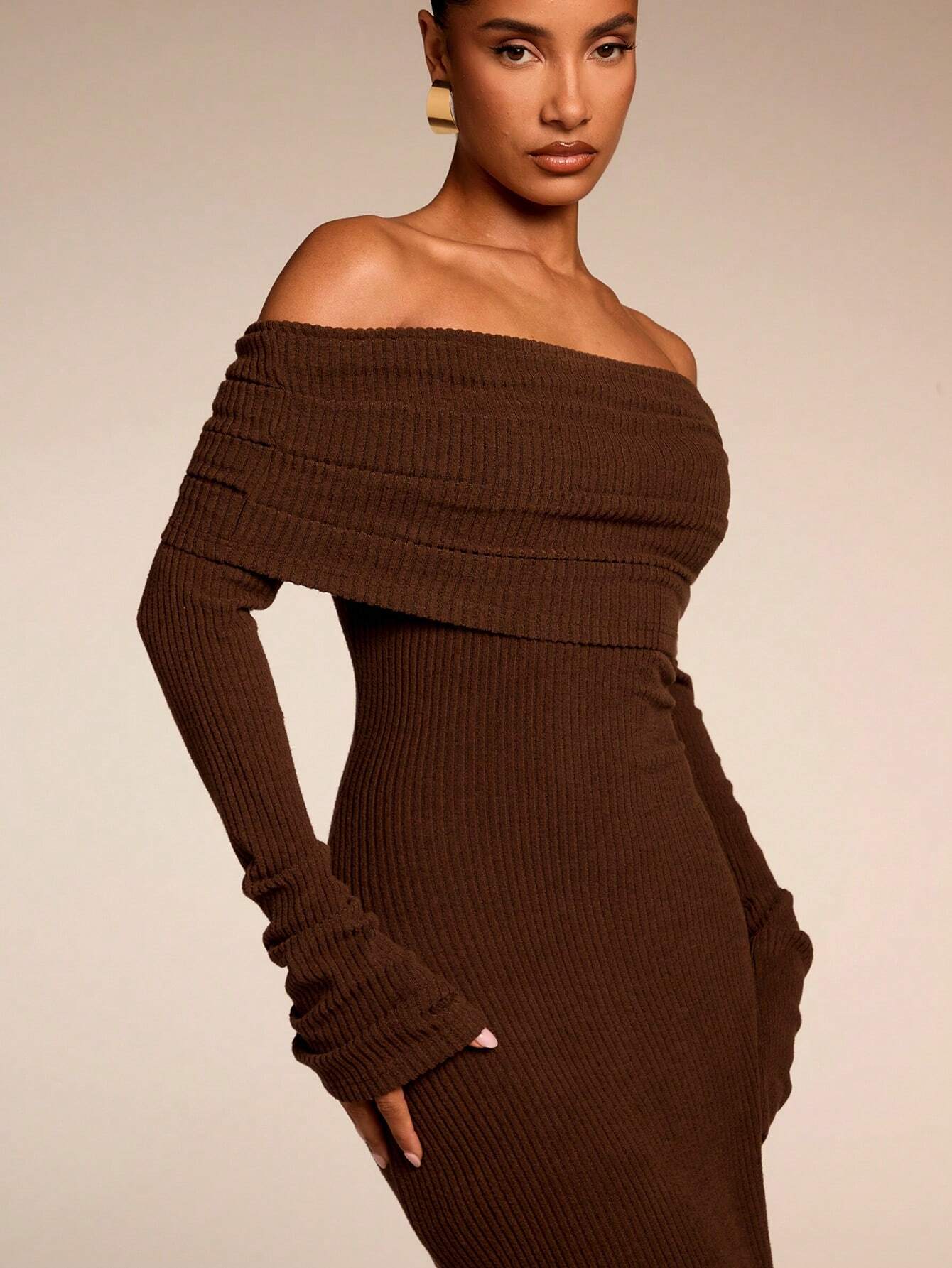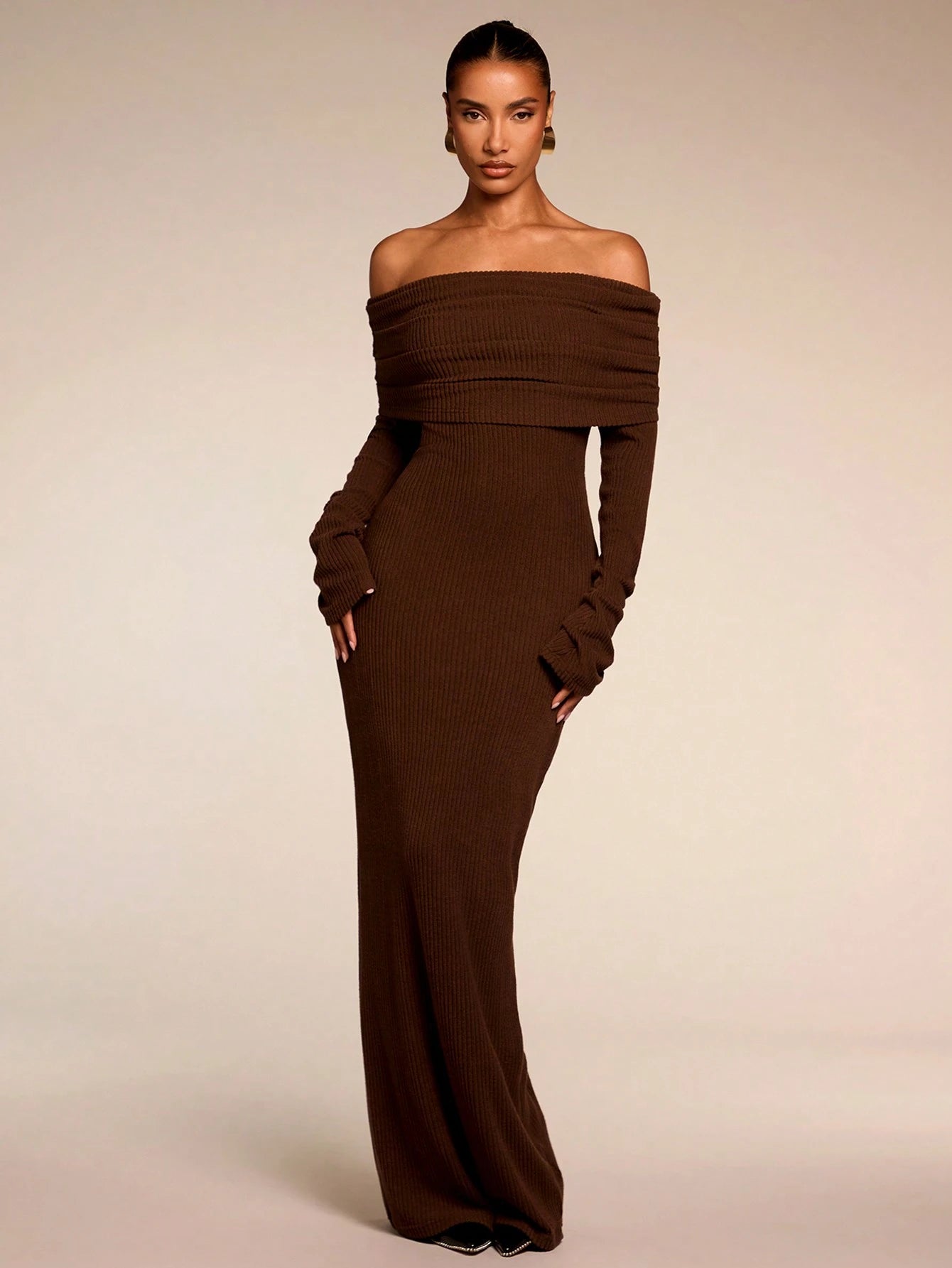 Das Kleid betont eine schmeichelhafte Silhouette und lässt sich mühelos stylen – der perfekte Weg, bei Festlichkeiten stilvoll aufzutreten, ohne viel Aufwand. Das Off-Shoulder-Design verleiht eine moderne, feminine Note, während der lange Ärmel zusätzlichen Komfort bieten – ideal für kühlere Abende.