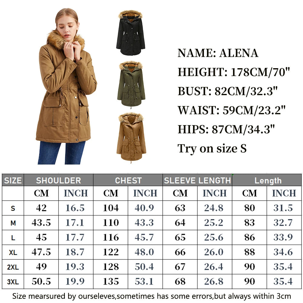 Damen Winterjacke Mit Fellkragen Lang Geschnittener Parka Kapuze Fleece Warm Stilvoll Alltagsjacke
